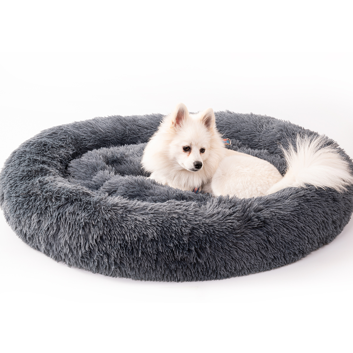 Fluffy Donut Dog Bed Warm Soft Long Plush Pet Cushion Dog House Cat Bed Washable Pet Sofa Mat Calming Samll Large Dog Beds